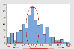 - 히스토그램에서 분포 모양.