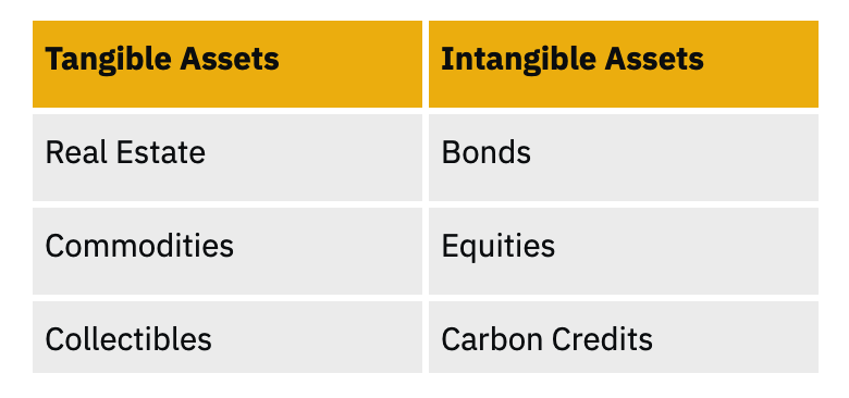 RWA는 현실 세계의 자산을 블록체인에 토큰화한 것으로, 부동산, 주식, 채권, 원자재, 탄소배출권 등이 여기에 해당합니다.