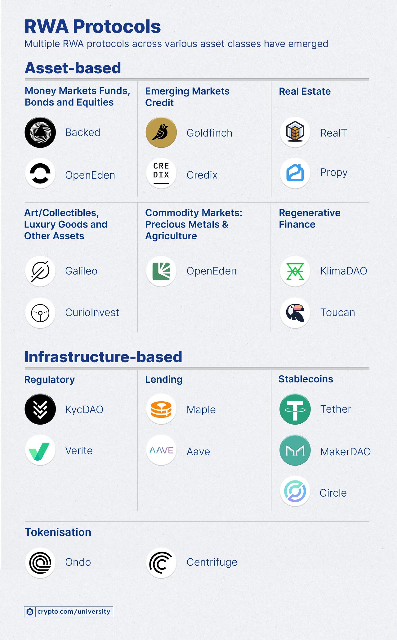 예를 들어, Maker는 DAI라는 스테이블 코인을 발행하여 RWA 생태계에서 유동성을 제공합니다.