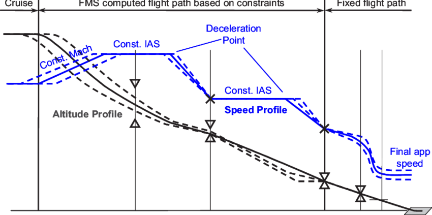 VNAV PATH는 항공기의 성능, 접근 제약, 기상 데이터, 항공기 무게 등을 고려하여 계산됩니다.