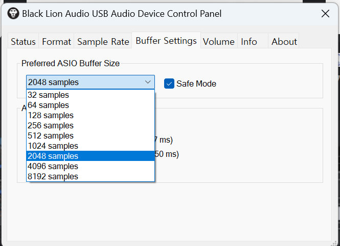 ASIO 드라이버 설정: 일부 ASIO 드라이버를 사용하면 오디오 인터페이스 제어판이나 DAW와 관계없이 소프트웨어 내에서 직접 버퍼 크기를 조정할 수 있습니다.