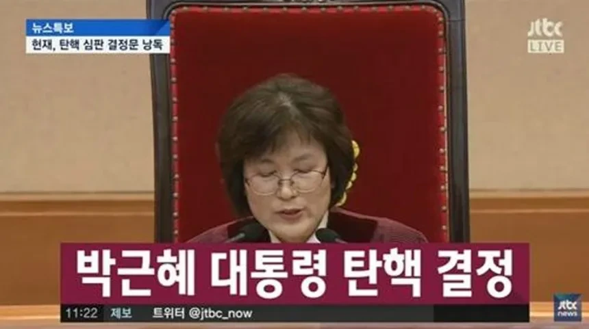 부패와 직권남용으로 인해 헌법재판소의 획기적인 판결로 탄핵되어 파면되었습니다.