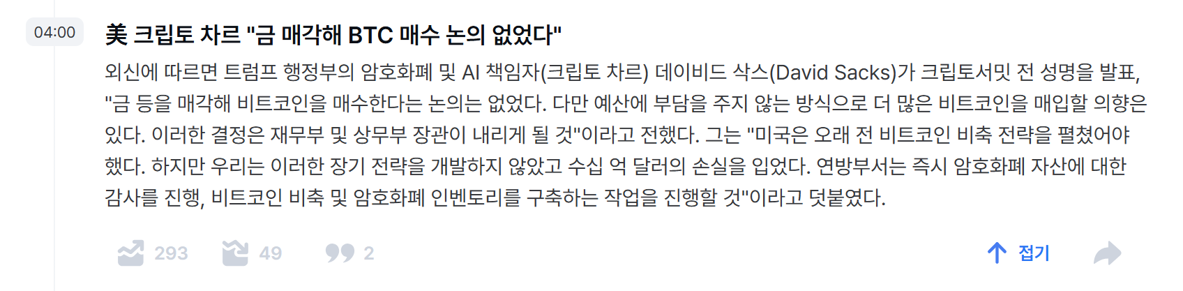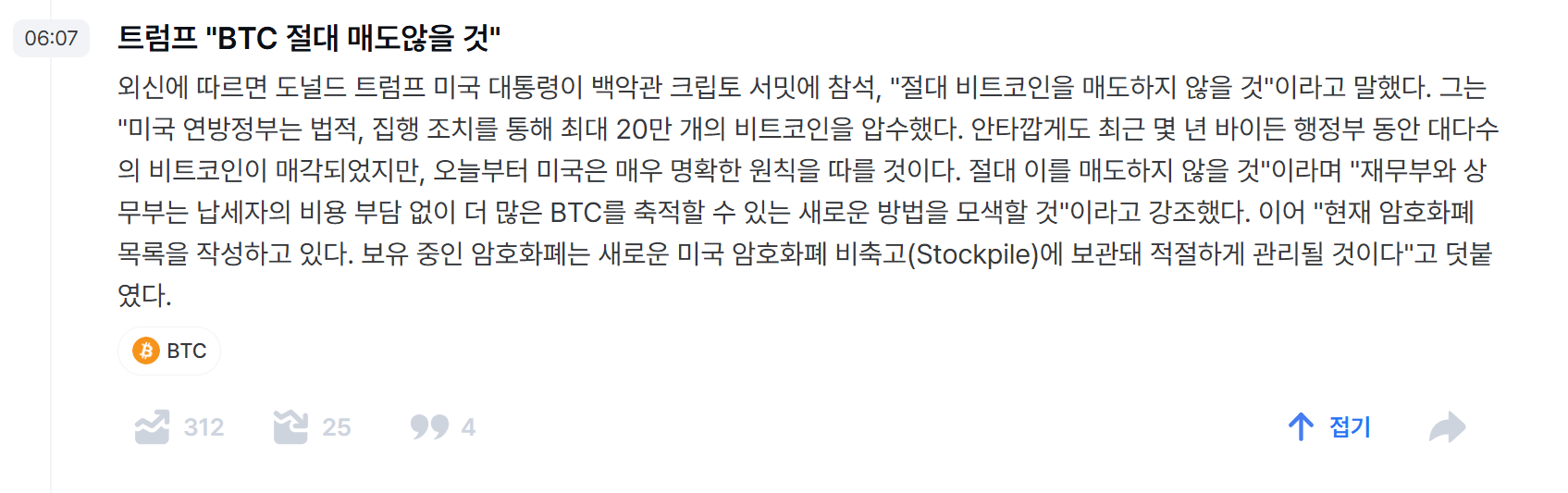 | [비트코인] 트럼프 대통령 전략적 자산 "비트코인" (2) | 2025.03.03 |