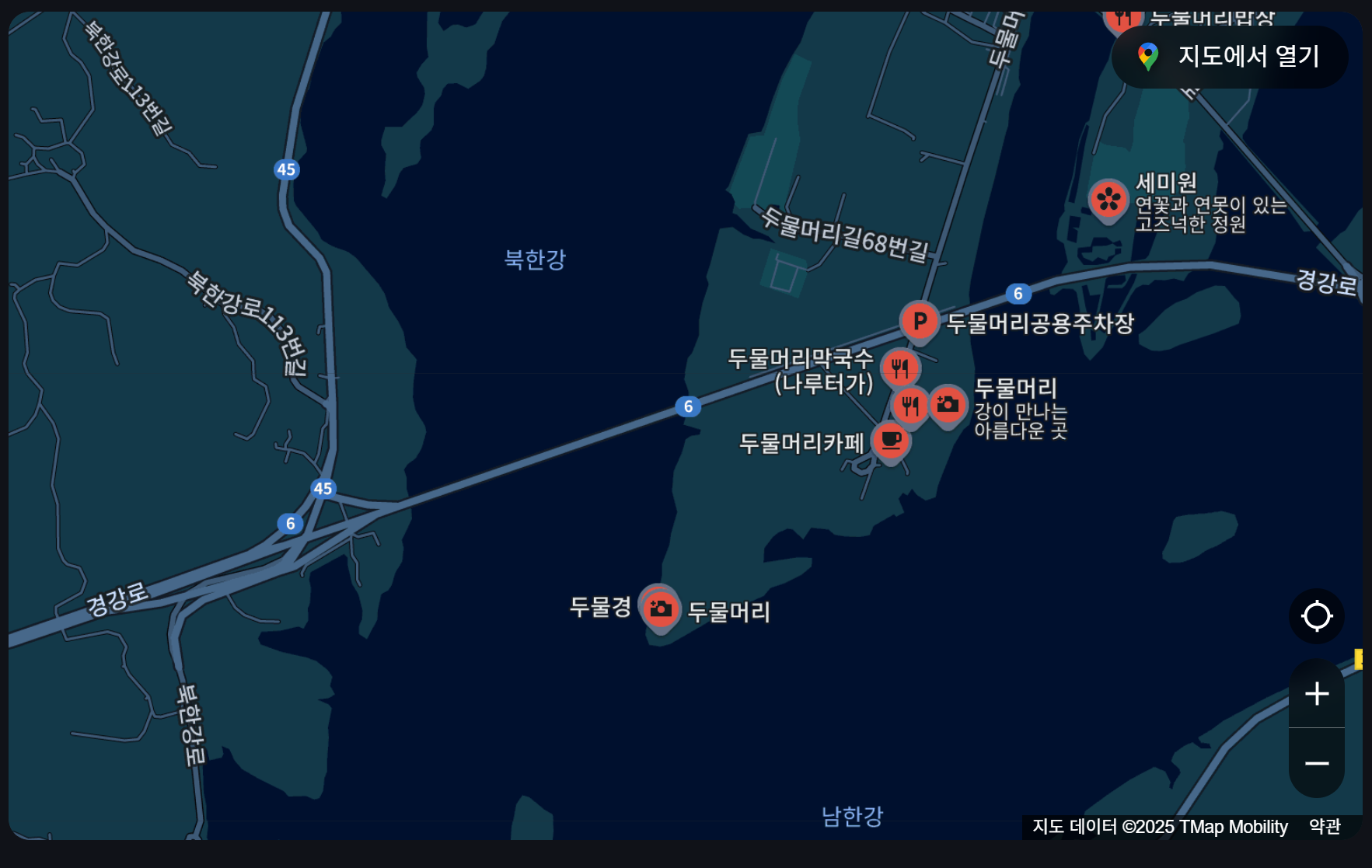 남한강 + 북한강 두 강이 만나는 곳이 두물머리이다.