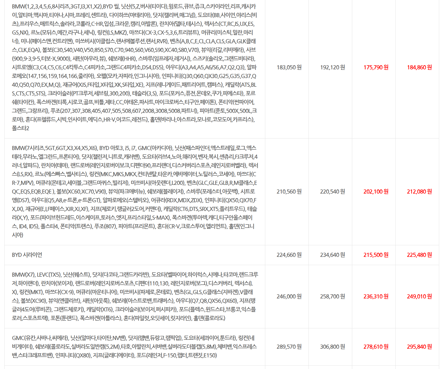차량 선적 비용은 편도 기준