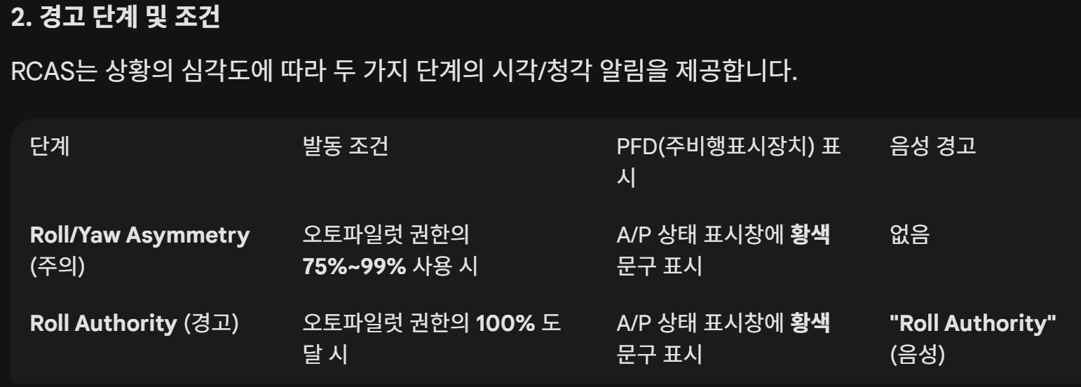 RCAS는 보잉 737 NG 및 MAX 시리즈에서 도입된 시스템으로, 자동조종 모드에서 비행기의 롤이나 요(선회) 불균형이 발생할 때 이를 감지하고 경고합니다.
