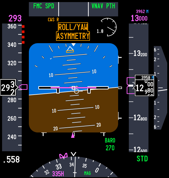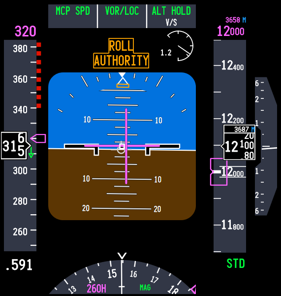 예를 들어, 자동조종이 뱅크 각도를 유지하려 할 때 시스템의 한계에 도달하면 "Roll Authority"라는 텍스트가 PFD(Primary Flight Display)에 표시되고, 동시에 "Roll Authority"라는 음성 경고가 울립니다.