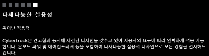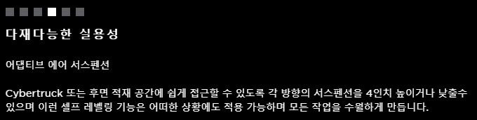 전반적으로 Tesla Cybertruck은 다양한 최첨단 기능과 성능을 제공하는 고도로 발전된 유능한 픽업 트럭입니다.